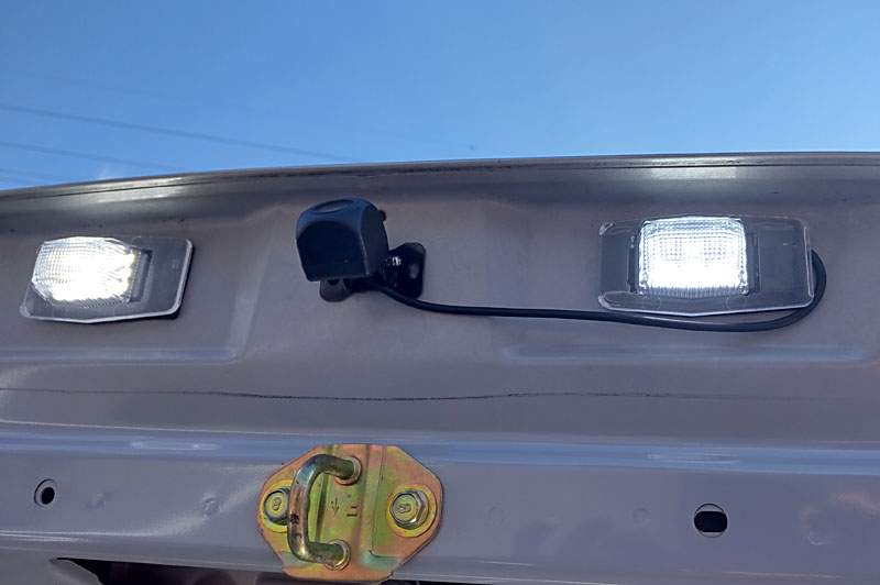 カメラから伸びたケーブルはライセンスランプの穴を利用して車体に引き込んだ