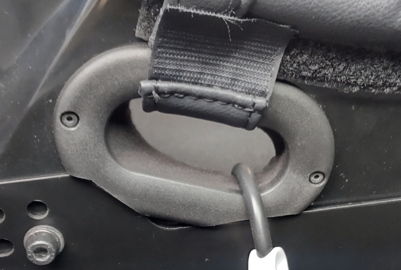 屋根側にL字アングル、バイザー側にネオジム磁石を内装用強力両面テープで貼り付けたところ、しっかり閉じられるようになった