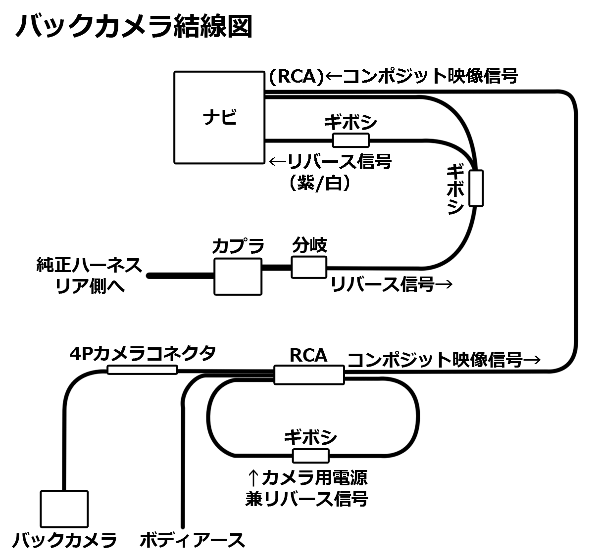 手前のカプラーは外し方が分からなかったので、奥側のカプラーのリバース信号(赤/黄)を