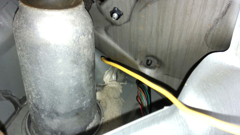 リアサスペンションの脇の隙間には車両ハーネスが通っているのでその隙間を利用して